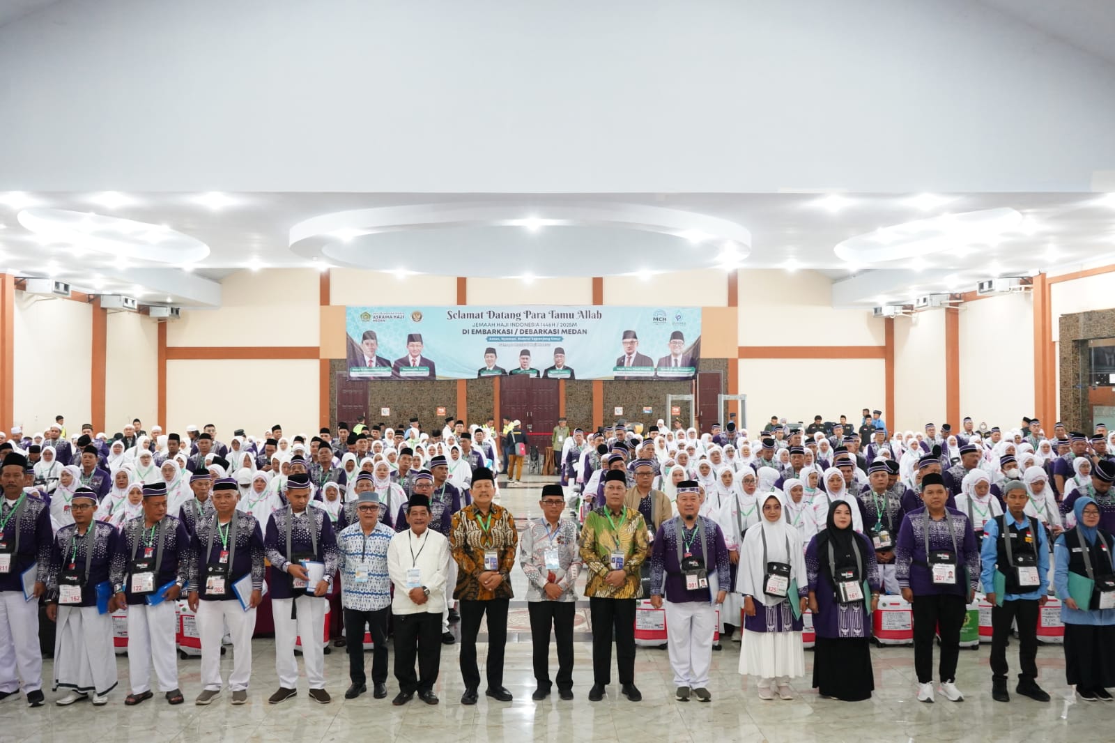 Ketua PPIH Embarkasi Medan dalam sambutannya mengatakan kepada jemaah haji agar meluruskan niat melaksanakan ibadah haji semata-mata mengharap Ridha Allah SWT dan selalu menjaga kesehatan.
