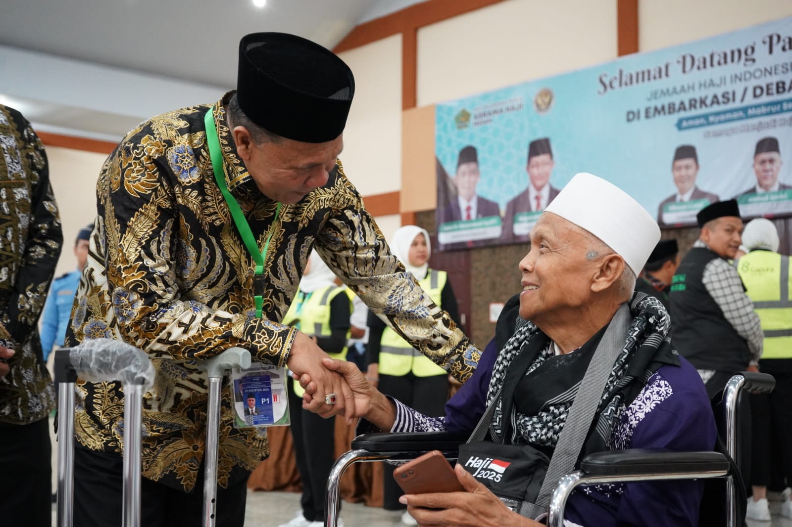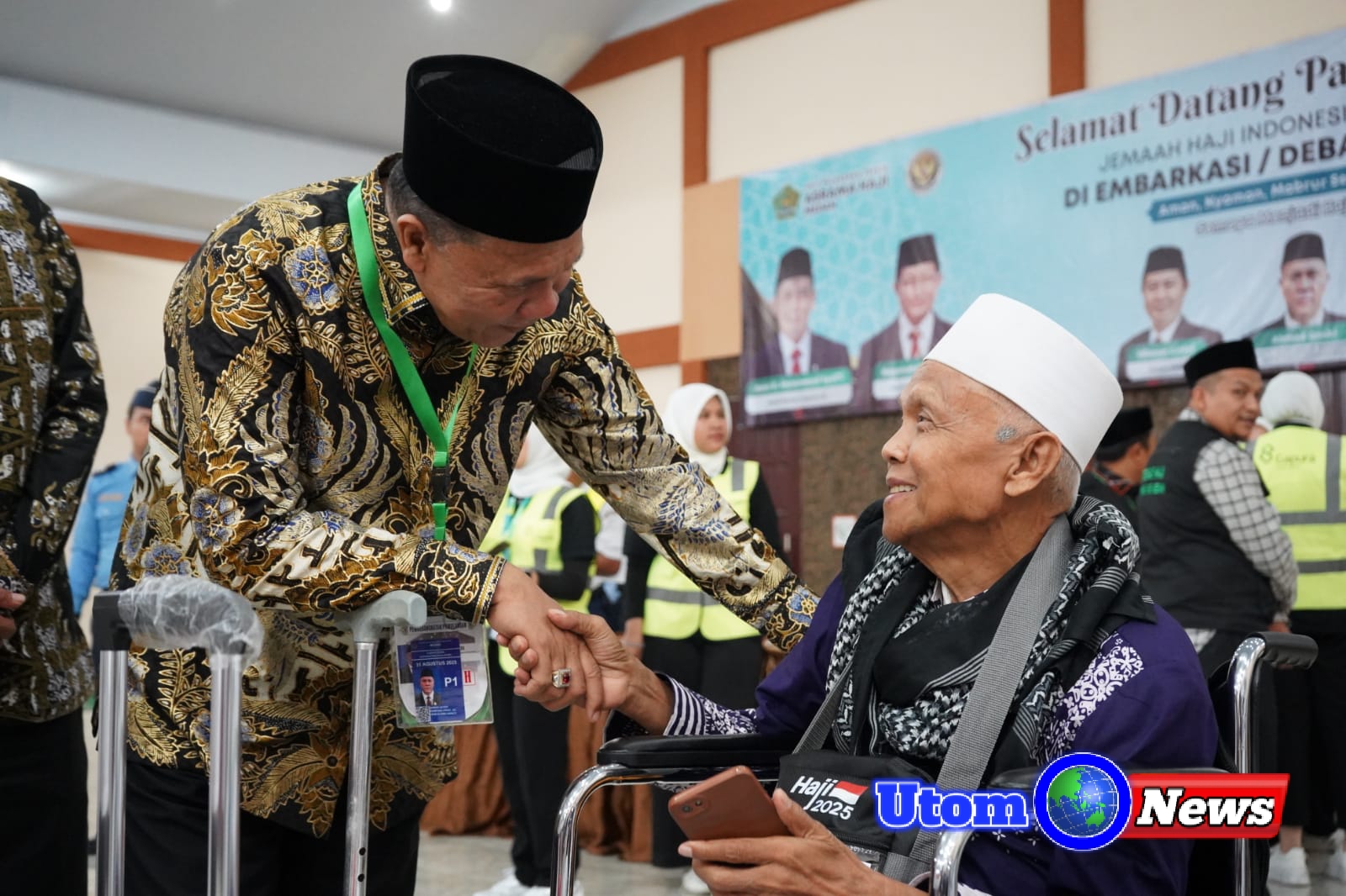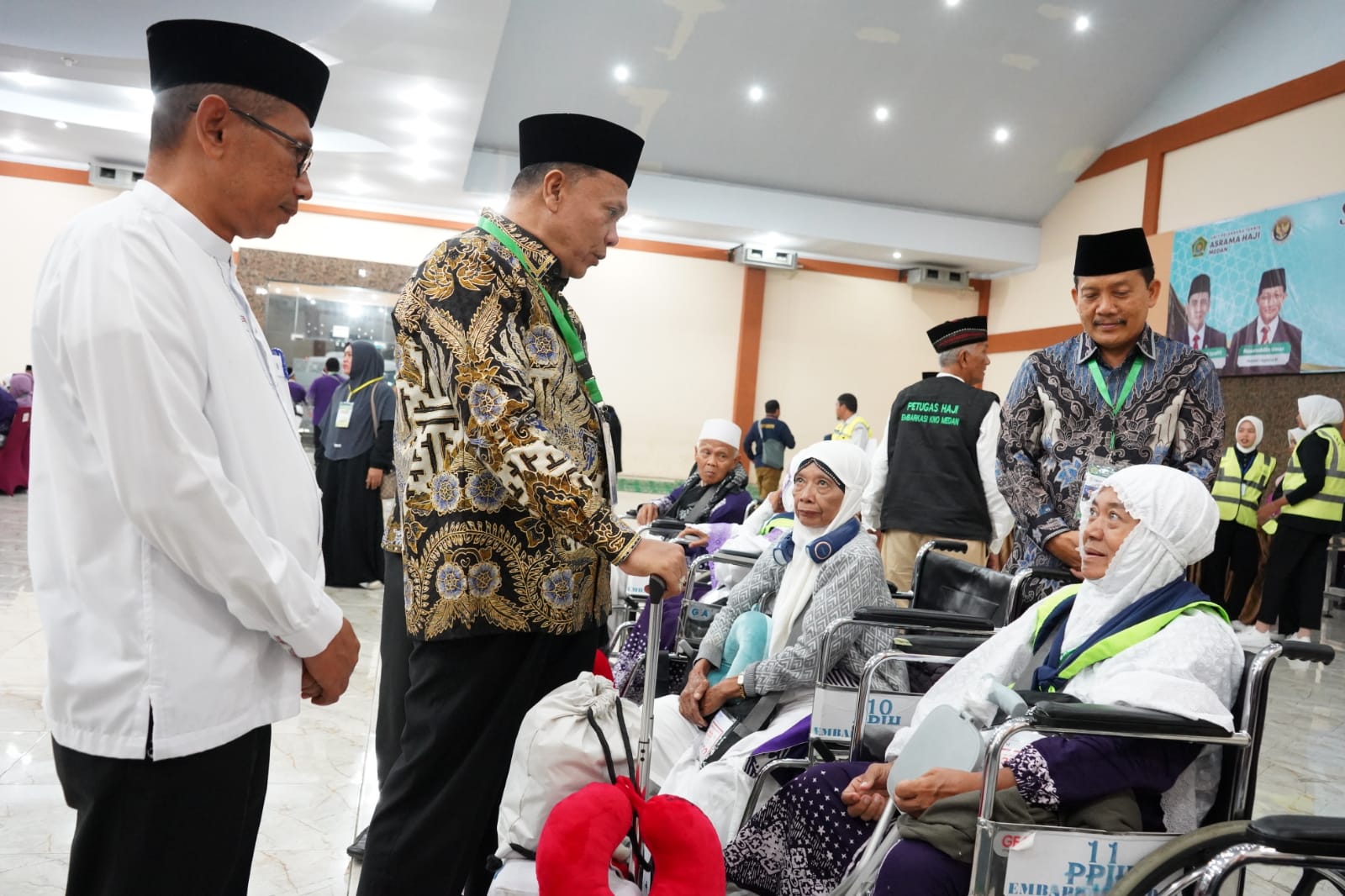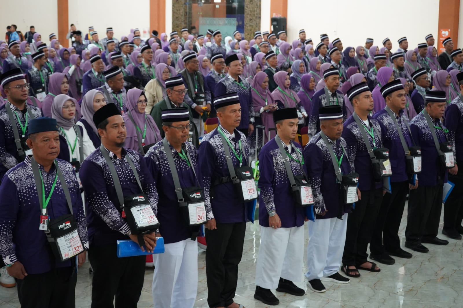 MEDAN | Ketua Panitia Penyelenggara Ibadah Haji (PPIH) Embarkasi Medan Tahun1446 H/2025 M, H. Ahmad Qosbi, S.Ag, MM melepas keberangkatan jemaah calon haji (Calhaj) Kelompok Terbang (Kloter) 8 Embarkasi Medan di Aula 1 Madinatul Hujjaj Asrama Haji Medan, Sabtu (10/5/2025).