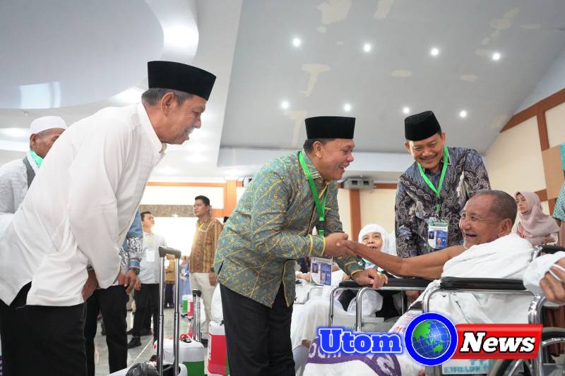 MEDAN | Jemaah Calon Haji (Calhaj) Kelompok Terbang (Kloter) 23 Embarkasi Medan bertolak ke tanah suci melalui acara pelepasan di Aula 1 Madinatul Hujjaj Asrama Haji Medan, Kamis (29/5/2025).