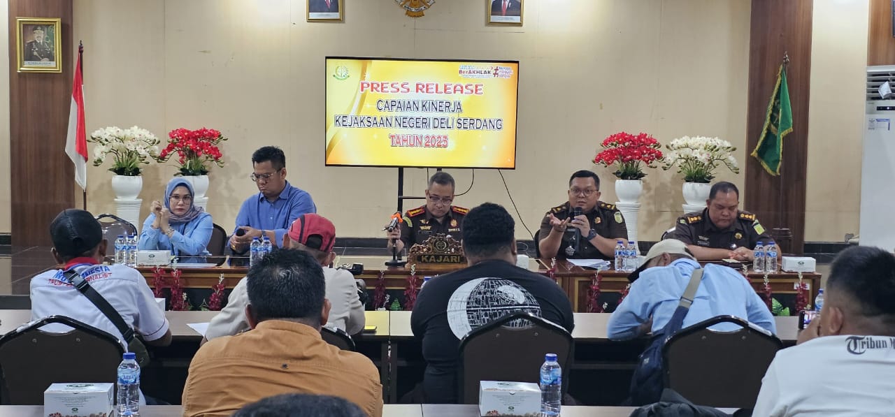 saat pers rilis akhir tahun dilantai 2 aula gedung kejaksaan di lubuk pakam, Selasa (23/12).
