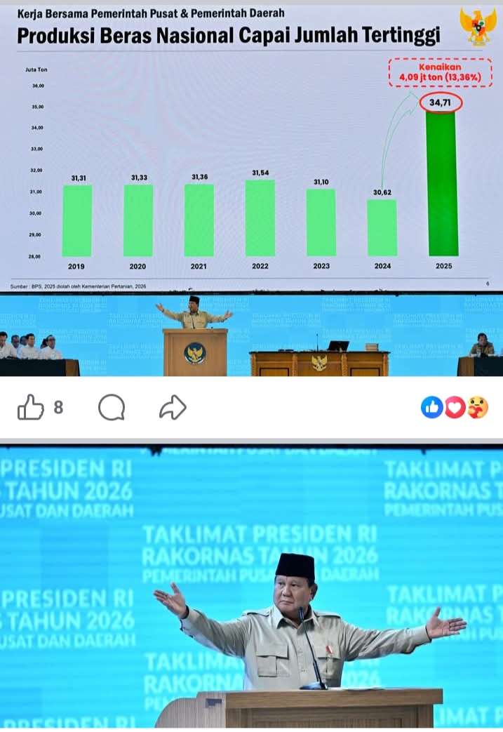 Pesan Presiden Prabowo di Rakornas ini jelas: transformasi bangsa adalah perjuangan kolektif. Dengan swasembada sebagai fondasi, Indonesia tak lagi sekadar mimpi, tapi kenyataan emas yang nyata di 2045. Mari satukan tujuan, wujudkan janji kemerdekaan sejati!.
