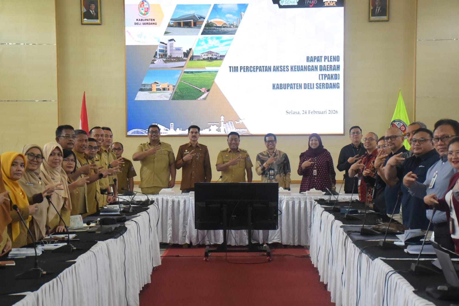 “Kedua, mewujudkan masyarakat yang cerdas dan terlindungi melalui kampanye menabung sejak dini, Bulan Inklusi Keuangan (BIK), peningkatan kepesertaan jaminan sosial, serta edukasi perlindungan konsumen bagi aparatur sipil negara (ASN),” kata Wakil Bupati (Wabup) Deli Serdang, Lom Lom Suwondo SS membuka Rapat Pleno Penetapan Program Kerja TPAKD Kabupaten Deli Serdang Tahun 2026 di Aula Cendana, Lantai II, Kantor Bupati Deli Serdang, Selasa (24/2/2026).