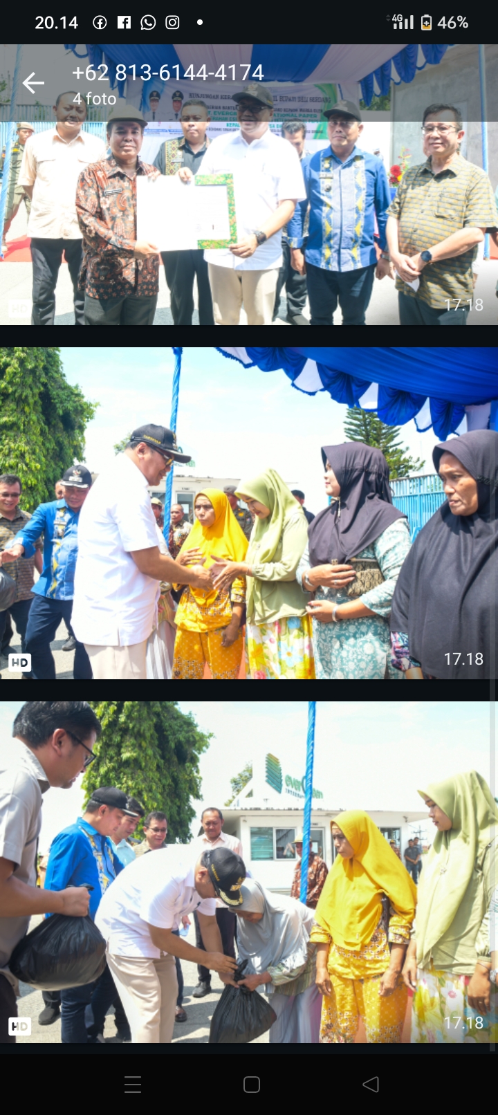 Bupati Deli Serdang, dr H Asri Ludin Tambuna bersama Wakil Bupati, Lom Lom Suwondo SS, menyalurkan bantuan berupa 1.800 paket sembako dari PT Evergreen International Paper kepada masyarakat Tanjung Morawa, serta sebidang tanah kepada Pemerintahan Desa Dalu X A, Jumat (13/3/2026). Bantuan yang diberikan tersebut merupakan kepedulian sosial dunia usaha dan bentuk nyata kolaborasi antara pemerintah, perusahaan, dan masyarakat dalam meningkatkan kesejahteraan bersama. (Foto Diskominfostan Deli Serdang)