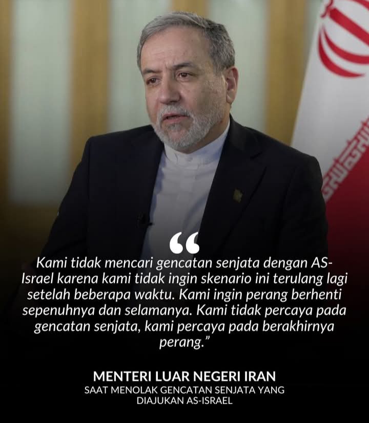 Araghchi tak main-main: “Kami tidak percaya gencatan senjata, mereka ahli tipu daya karena itu hanya jeda palsu yang picu perang baru.” Data mengerikan mendukung argumen Teheran.