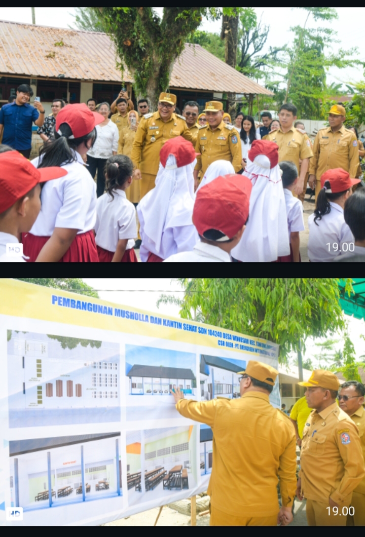 Bupati Deli Serdang dr H Asri Ludin Tambunan bersama Wakil Bupati, Lom Lom Suwondo SS peletakan batu pertama pembangunan musala dan kantin sehat SDN 104240 Wonosari Senin (30/3/2026), kegiatan ini bagian dari upaya peningkatan kualitas sarana dan prasarana pendidikan. Pembangunan musala dan kantin sehat tersebut didukung melalui program Corporate Social Responsibility (CSR) PT Evergreen International Paper Tanjung Morawa.