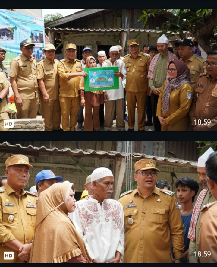 Lubukpakam | Bupati Deli Serdang, dr H Asri Ludin Tambunan dan Wakil Bupati, Lom Lom Suwondo SS meletakkan batu pertama renovasi rumah tidak layak huni milik warga bernama Usman di Jalan Thamrin Gang Saudara No. 71, Kelurahan Syahmad, Kecamatan Lubuk Pakam, Senin (30/3/26).
