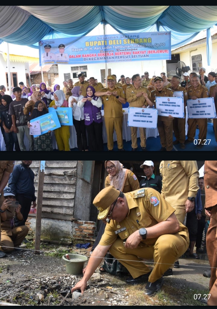 Pemerintah Kabupaten Deli Serdang menetapkan Desa Percut sebagai kawasan intervensi terpadu penanganan stunting yang dipadukan dengan penataan kawasan kumuh. Langkah ini diharapkan menjadi model percontohan bagi wilayah lain di Deli Serdang, Selasa (31/3/2026), Bupati Deli Serdang, dr H Asri Ludin Tambunan menegaskan, penanganan stunting tidak bisa berdiri sendiri, melainkan harus diiringi dengan perbaikan kualitas lingkungan tempat tinggal masyarakat. Karena itu, Desa Percut dipilih sebagai titik awal intervensi menyeluruh, mulai dari perbaikan rumah, akses air bersih, sanitasi, hingga infrastruktur dasar. (Hari’S).