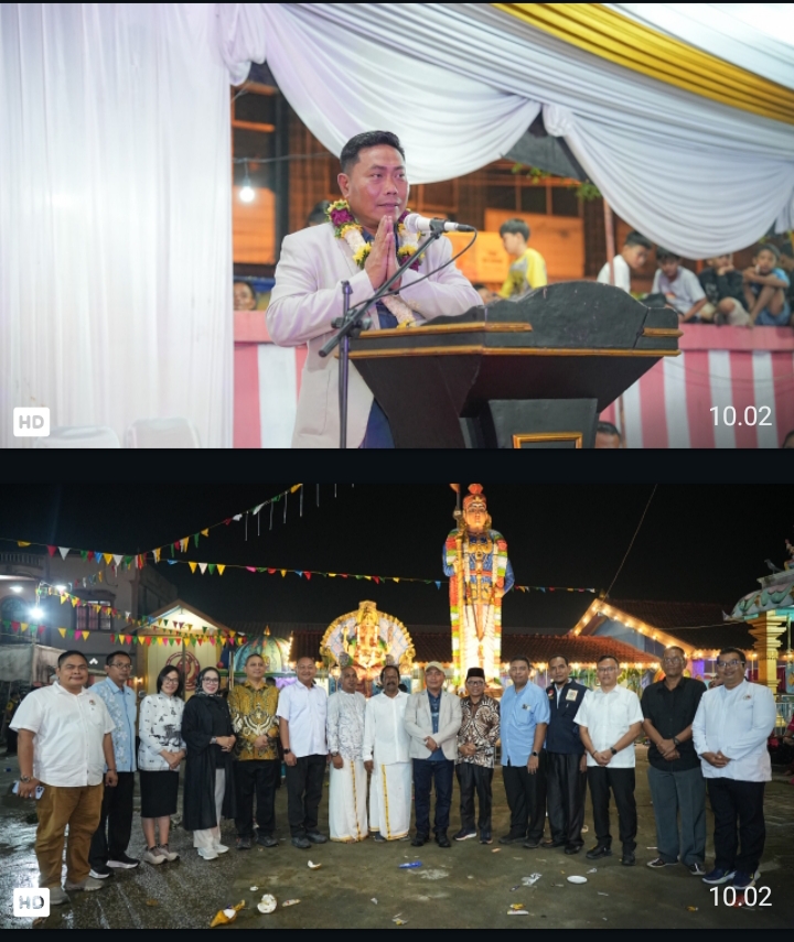 Wakil Bupati Deli Serdang, Lom Lom Suwondo SS, menegaskan pentingnya menjaga toleransi dan kerukunan antarumat beragama saat menghadiri Perayaan Maha Puja Panguni Uthiram Tahun 2026 di Kuil Shri Thendayudhabani, Lubuk Pakam, Rabu malam (1/4/2026).Melalui perayaan ini diharapkan lahir insan yang berbudi pekerti luhur, penuh kasih, serta mampu menciptakan kedamaian dalam kehidupan bermasyarakat.