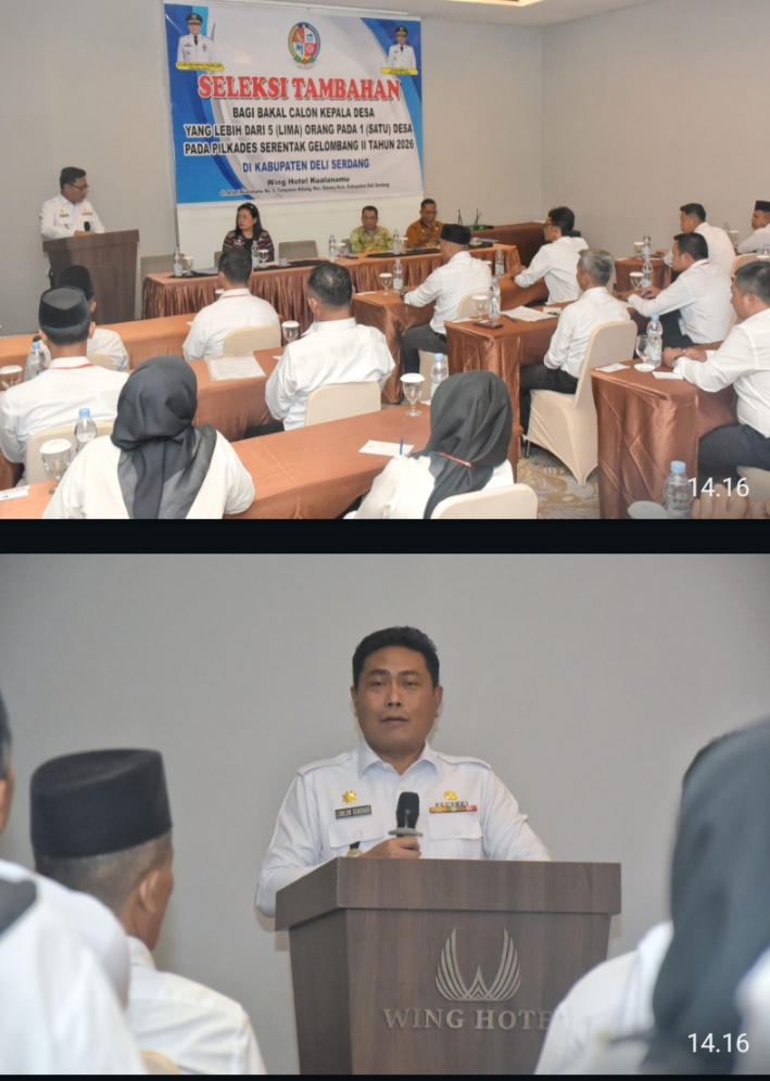 Pemerintah Kabupaten Deli Serdang menggelar Seleksi Tambahan Bakal Calon Kepala Desa pada Pilkades Serentak Gelombang II Tahun 2026 untuk menyaring maksimal lima kandidat terbaik di setiap desa. Seleksi ini diikuti 27 peserta dari empat desa dan menjadi tahapan penentu guna memastikan proses demokrasi berjalan objektif, transparan, serta menghasilkan calon kepala desa yang kompeten dan berintegritas.
